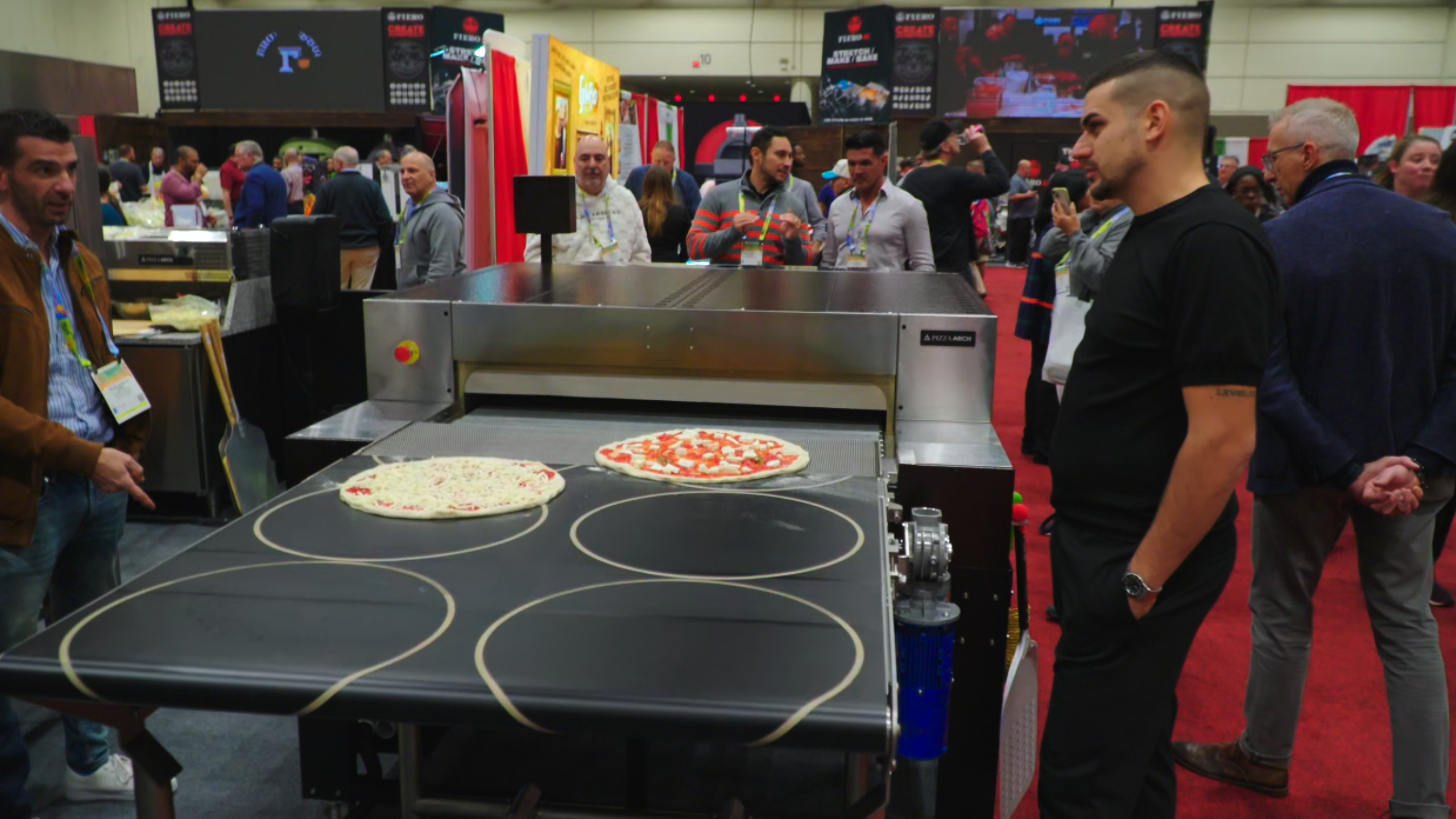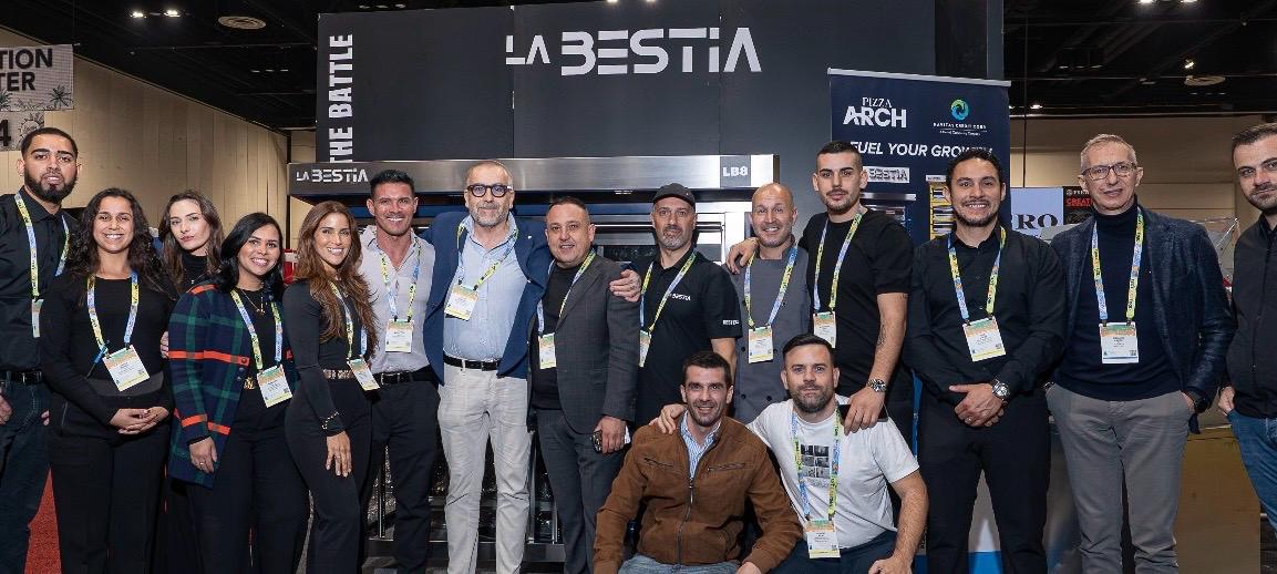 PizzaArch booth at The Pizza Summit Orlando 2025 featuring Italian pizza ovens Onice and La Bestia, custom café station with gelato, espresso, and authentic Italian equipment. ...more