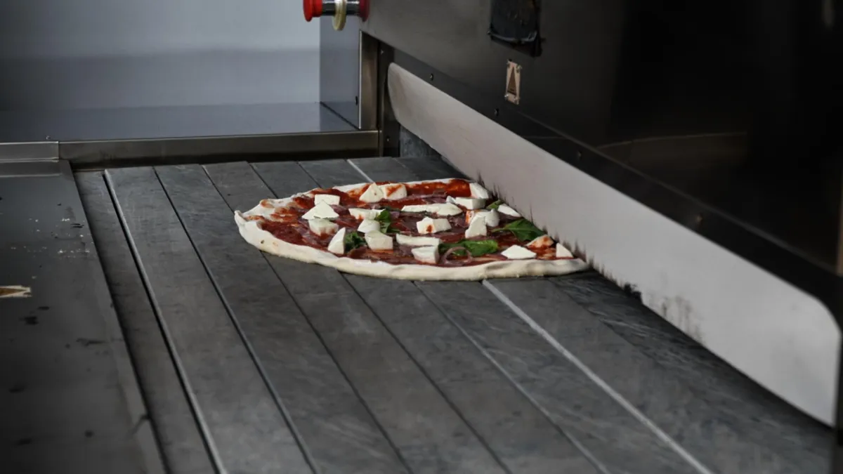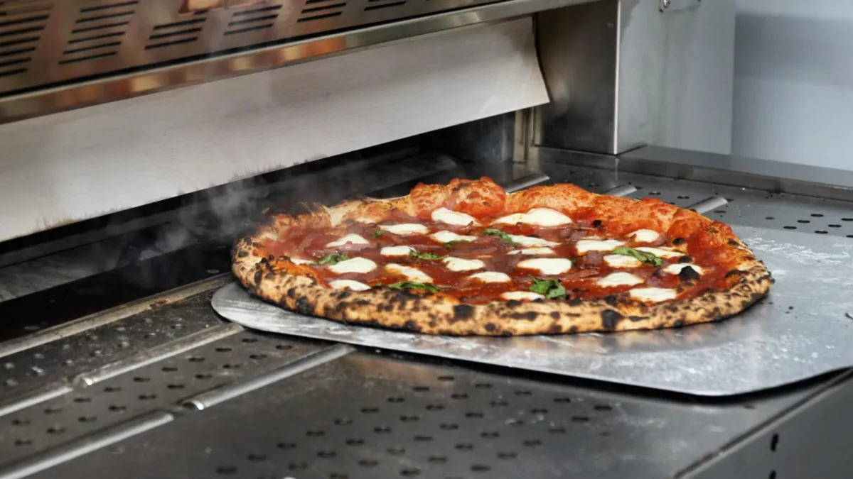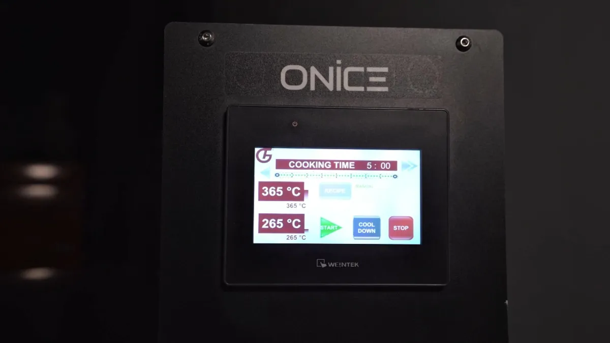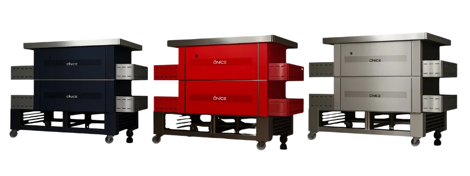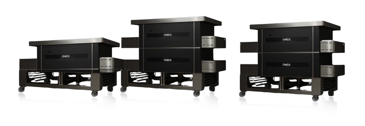 Inside Onice, heat lives in every stone. The chamber is completely surrounded by natural stone top, sides, and floor creating a radiant heat cave that delivers authentic stone-baked results with industrial precision.